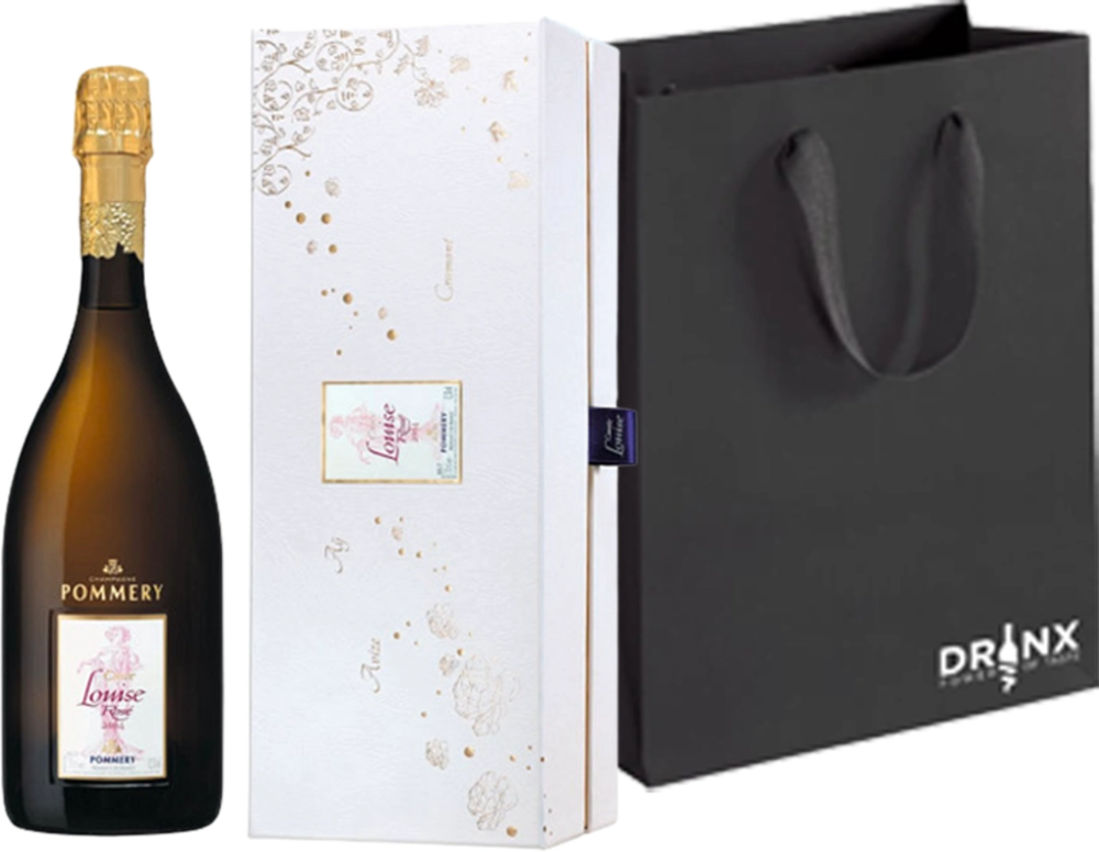 V paketu najdete: • 1 x Champagne Cuvee Louise Rose Vintage 2004 GB Pommery 0,75 l • 1 x darilna vrečka