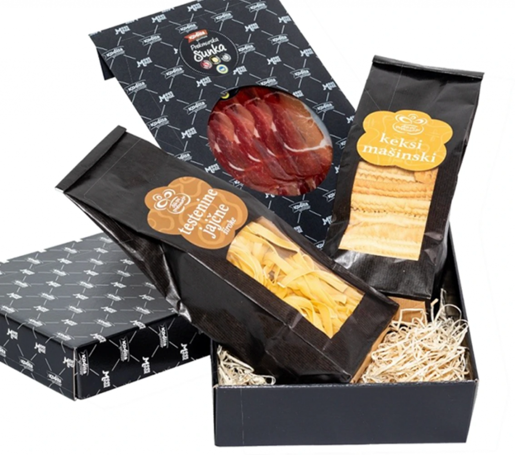 1 x keksi mašinski 400g 1 x testenine jajčne široke 250g 1 x premium šunka narezek 120g