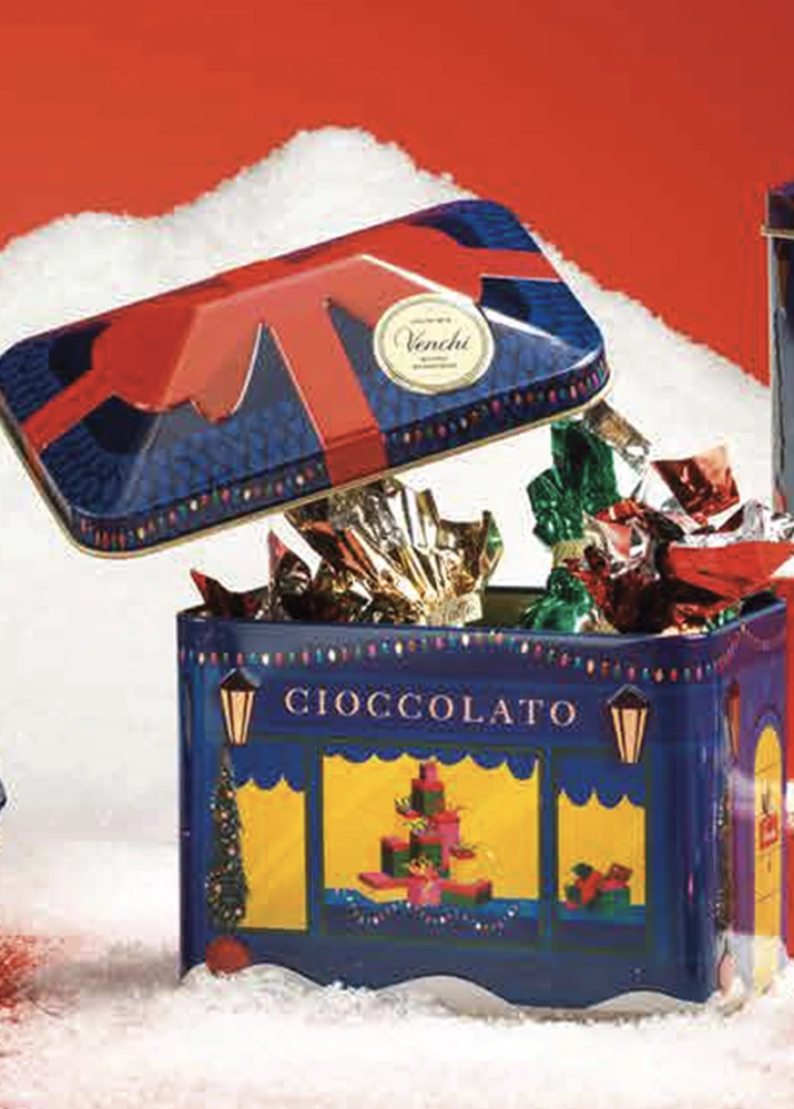 Letos, ko odprete kovinsko škatlico Venchi, se odpro vrata v svet, poln bleščečih čudežev, kjer je vse mogoče. Oblecite šal in rokavice, saj je prišel najčarobnejši čas v letu. Kaj bi lahko bilo boljše darilo kot škatlica polna okusnih čokolad? Odkrijte izjemno izbiro Cometa čokolad: kremne mlečne in temne čokolade, popolne za vsak okus. Ta posebna in omejena izdaja prinaša sladko presenečenje v vaš dom.
