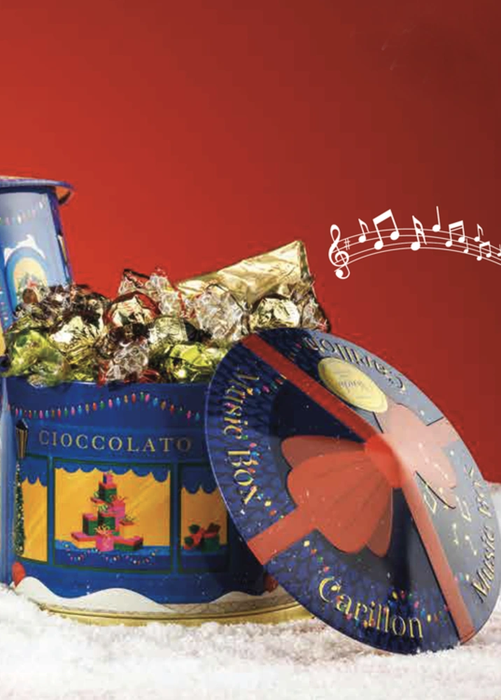 Carrillon, glasbena kovinska škatlica s čokoladnimi bonboni Venchi, težka 300 gramov, prinaša pravo praznično čarobnost. Ko zavrtite podstavek v smeri urinega kazalca, zaigra čudovita božična melodija, ob kateri lahko pripovedujete svoje najlepše božične zgodbe. V njej se skriva izbor čokoladnih bonbonov Pearl in Chocomousse, ki so kot nalašč za sladkanje ob zvokih praznične glasbe. Ta omejena izdaja je kot ustvarjena za dodajanje čarobnega pridiha vašemu prazničnemu vzdušju.