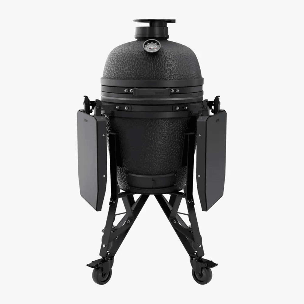 BSTRD Medium je vrhunski kamado žar, zasnovan za ljubitelje peke, ki si želijo izjemno funkcionalnost in odličen dizajn. S svojo robustno keramično konstrukcijo in natančnim nadzorom temperature je ta žar idealen tako za počasno peko, kot za visoke temperature. BSTRD izjemno dobro zadržuje temperature in je zato peka sočnih steakov, hrustljave pizze in zelenjave izjemno preprosta. Unikatna grafitna barva doda vsakemu zunanjemu prostoru poseben sodoben pridih. Žar doseže temperature od 0 °C do 400 °C.