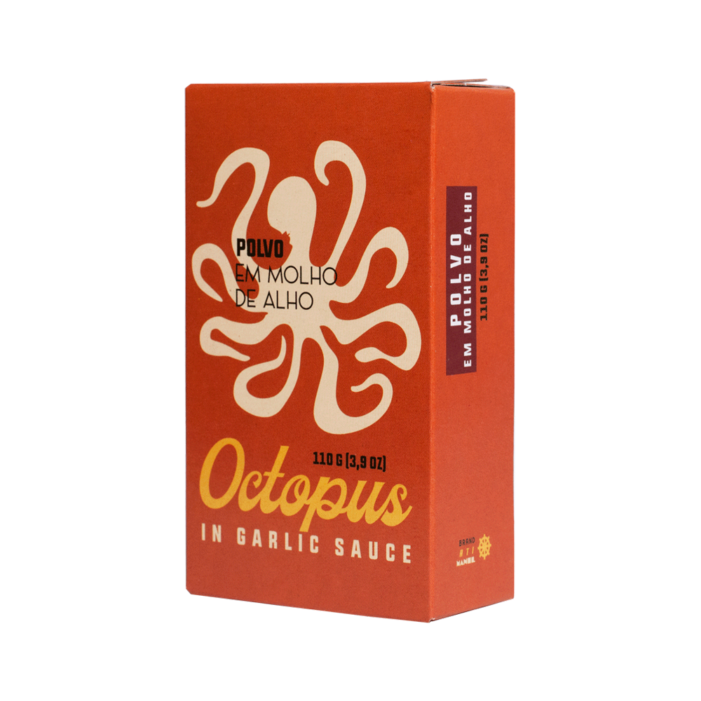 Hobotnica in česen sta stoletja nepogrešljiva v portugalski obalni kuhinji. Ta konzerva ujame to tradicijo z nežnimi koščki hobotnice v bogati česnovi omaki, ki uravnoteži naravno sladkost morskih sadežev z aromatično globino.