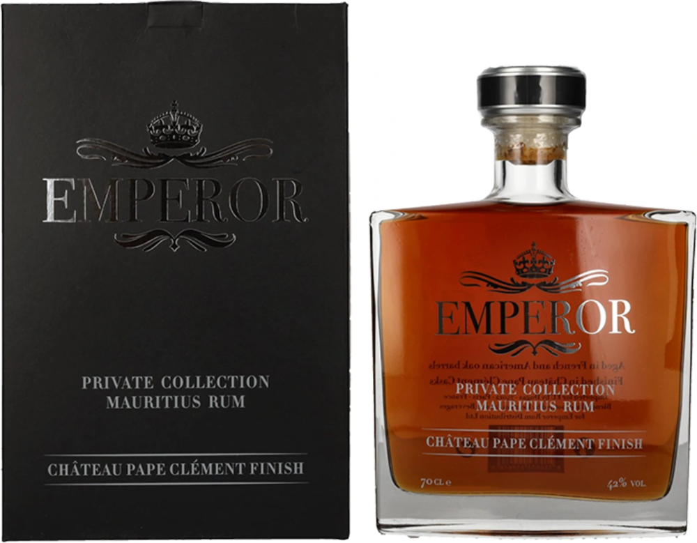 Emperor PRIVATE COLLECTION Mauritian Rum Château Pape Clement Finish je prvi rum v ponudbi Private Collection. Ta rum z Mauritiusa je mešanica res starih rumov. Zori v hrastovih sodih, ki so se prej uporabljali za vina razreda Grand Cru Château Pape Clement, Bordeaux v Franciji. Opombe o okusu: Barva: Bogata zlata s poudarki mahagonija. Nos: opecen toffee, rdece jagode, vanilija, hrast, zrelo sadje, pridih pikantnega lesa, staro usnje. Okus: globok, mehak, pikanten, sladek, arome hrasta, sladkih jagod. Zakljucek: dolgo obstojen, sladek.