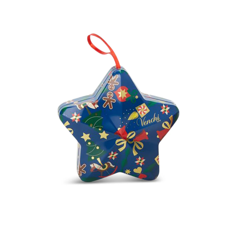 Venchi Star Tin je bleščeč dodatek k božičnim darilom in vsebuje majhno izbiro kremastih pralinejev in čokolad gianduja. Očarljivo polnilo za nogavico ali dodatek za mizo.